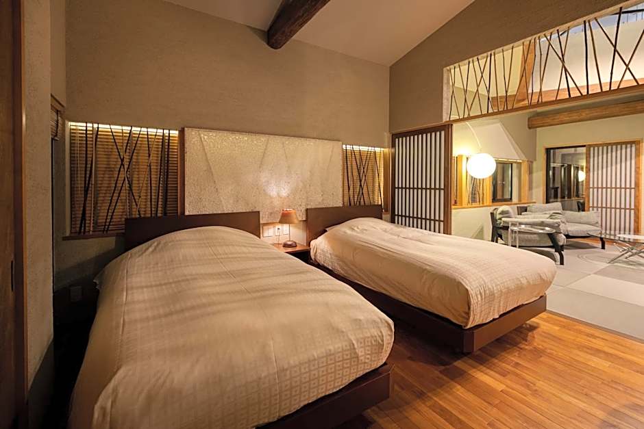 The private open-air bath is the standout feature of this suite. This spacious suite features 1 living room, 1 separate bedroom and 1 bathroom with a bath and free toiletries. This suite is air-conditioned and has a flat-screen TV, a safe deposit box, an electric kettle and yukata. The unit has 2 beds and 2 futons.