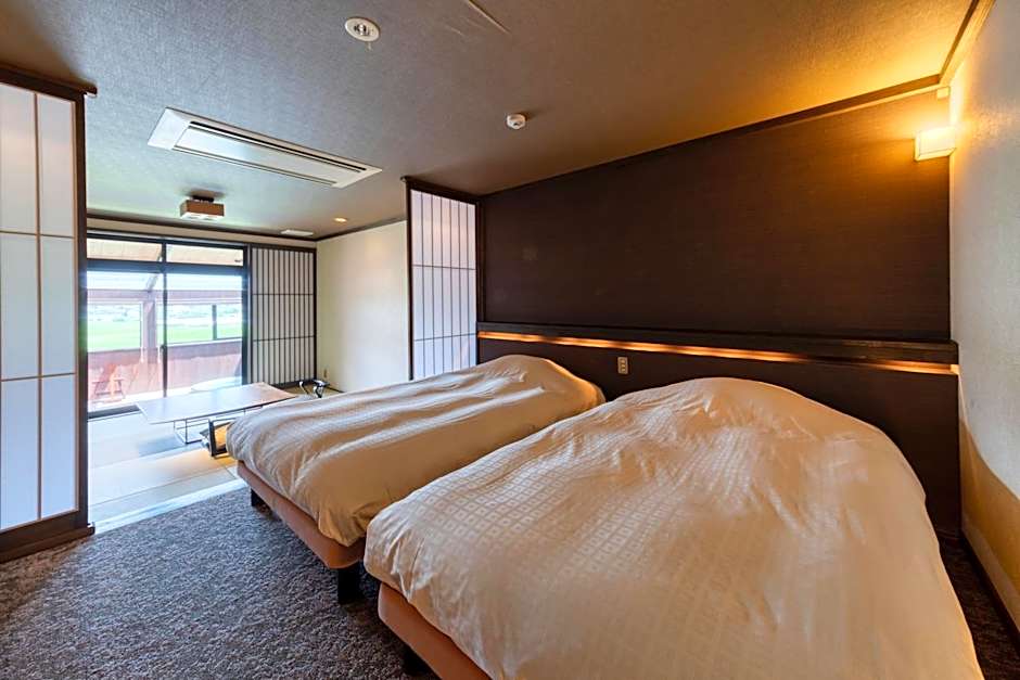 The spacious twin room features air conditioning, a safe deposit box, as well as a private bathroom boasting a bath and a shower. The twin room offers an electric kettle, yukata, heating, as well as a flat-screen TV. The unit has 2 beds and 2 futons.